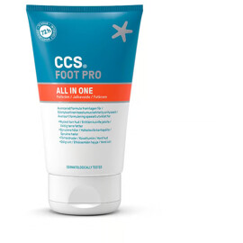 CCS FOOT PRO All-In-One er udviklet til fødder med meget tør hud, hård hud og sprukne hæle. Formlen har fem funktioner: giver intensiv fugt, blødgør hård hud, fjerner døde hudceller, forbedrer hudens beskyttelsesbarriere og modvirker dårlig lugt. Cremen indeholder 10% carbamid for fugtbinding, havrekerneolie som styrker hudbarrieren samt eukalyptusolie som modvirker dårlig lugt. Dermatologisk testet og vegansk.