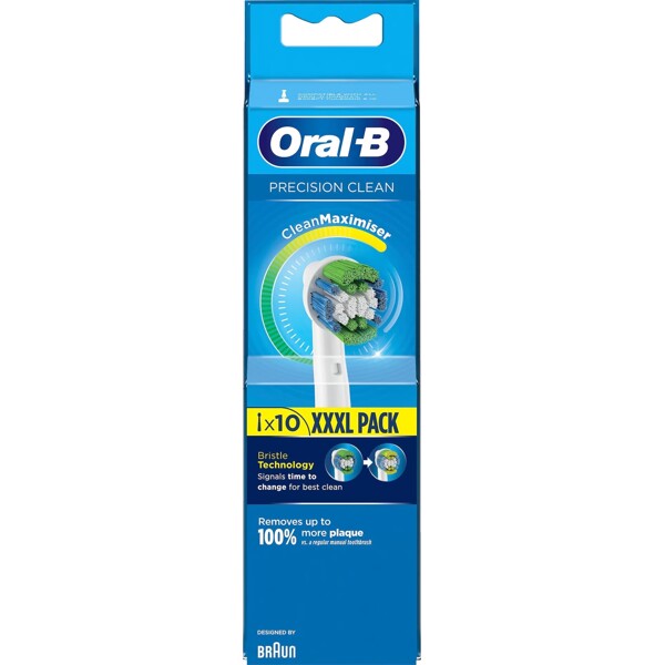 Oral-B Precision Clean-børstehårene når dybt ind mellem tænderne og dækker en større overflade, hvilket rengør din mund bedre end en almindelig, manuel tandbørste og fjerner op til 100 % mere plak sammenlignet med en almindelig manuel tandbørste for en overlegen rengøring.