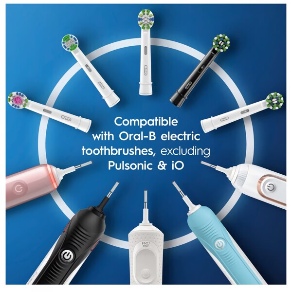 Kompatibel med Oral-B genopladelige eltandbørster, undtagen Pulsonic- og iO-tandbørster.