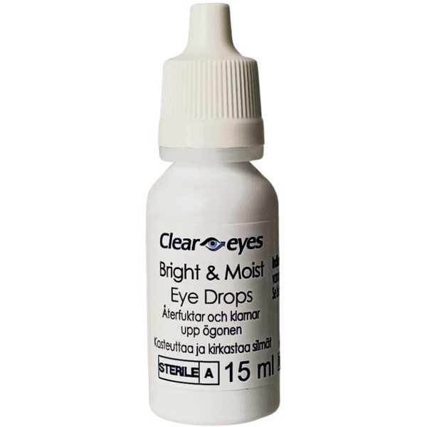 Cleareyes Bright & Moist er en steril øjendråbeløsning, der bruges til at fugte og smøre tørre øjne samt midlertidigt reducere øjenrødme forårsaget af ydre faktorer som miljøpåvirkning. Dråberne indeholder hyaluronsyre, som bidrager til langvarig fugt, og Euphrasia (øjenlys), som traditionelt bruges til at lindre øjenirritation.
