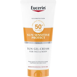 Eucerin® Solbeskyttelsesinnovation - Eucerin Sun Sensitive Protect Gel-Cream SPF 50+ er en solcreme til ansigt og krop, der er specielt udviklet til solfølsom hud. Eucerin® Solbeskyttelsesinnovation med ADVANCED SPECTRAL TECHNOLOGY: kombinerer UVA/UVB-filtre for meget høj UV-beskyttelse og Licochalcone A for at neutralisere frie radikaler forårsaget af UV- og højenergilys (HEVIS). Glycyrrhetinsyre understøtter hudens egen DNA-reparationsmekanisme. Formlen med Alpha-Glycosylrutin hjælper med at forebygge solrelaterede skader.