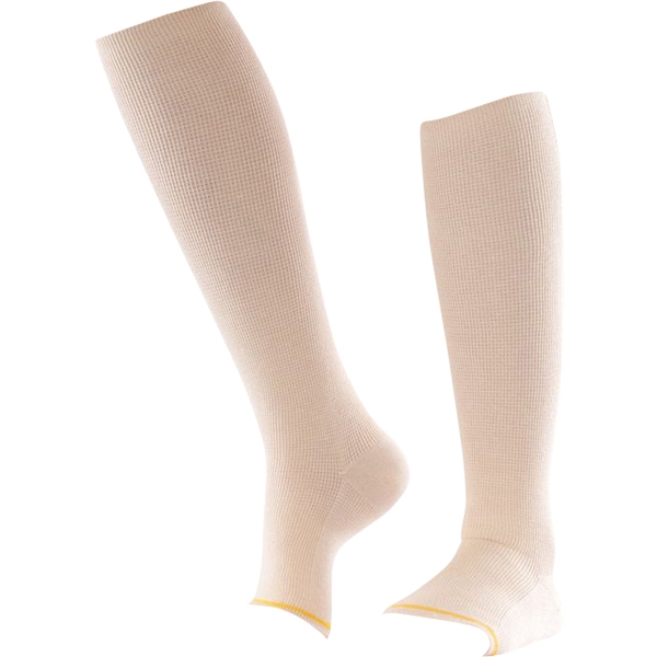 Medicinsk støttestrømpe som modvirker hævelser, træthed og åreknuder. Strømpen har en åben tå hvilket giver en bedre pasform og gør at den er nemmere at tage på. Glidestrømpe medfølger. Strømpen er ekstra holdbar overfor sol og salver.Strømpen er af kompressionsklasse 1 (18mmHg) og har en aftagende kompression fra læggen og opefter, hvilket giver en øget blodcirkulation.Passer til både mænd og kvinder.Vælg den rigtige størrelse:For at pasformen skal blive perfekt er der 2 mål du skal udgå fra: omkredsen omkring anklen hvor den er smallest og omkredsen omkring læggen hvor den er bredest. Målene skal tages som det første om morgenen inden benene/fødderne hæver.Fold aldrig den øverste strømpekant ned, for det giver en forkert trykfordeling og derved ikke den beregnede effekt!