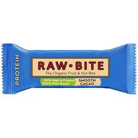 Rawbite Protein Smooth Cacao (Frugt- & Nøddebar Kakao Protein) er en nærende bar med masser af smag i hver bid. Lavet af økologiske ingredienser som kakao, tørret frugt og cashewnødder. 20 % protein, 100 % plantebaseret. Ren, blød, cremet kakaosmag.