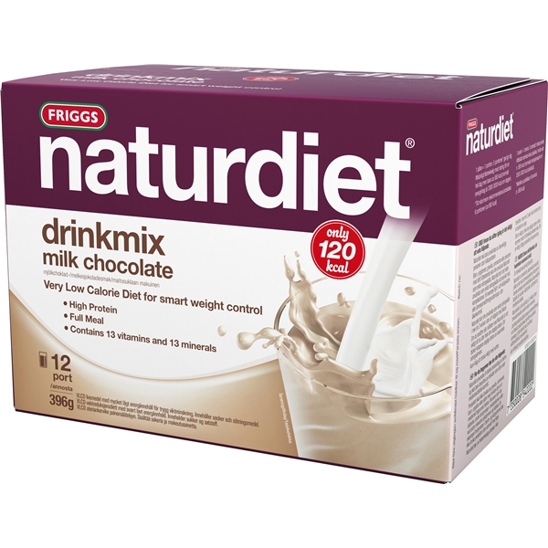 Naturdiet indeholder protein, fiber og kulhydrater i den rette mængde samt vitaminer og mineraler men meget lidt kalorier/lidt energi. Naturdiets er komponeret for at holde dig mæt samt for at smage godt. Drinkmix er en pulverblanding, som du blander med koldt vand i en shaker. Omryst nogle sekunder og så er det færdigt! Dette er en komplet kosterstatning (VLCD), som er velegnet for dig, der vil få en hurtig start mod dit nye, lettere liv. Hver pose indeholder 110 kcal.