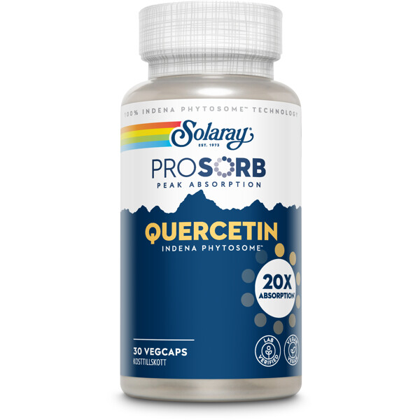I SOLARAY PROSORB QUERCETIN anvendes fytosomal teknik (Indena Phytosome™), hvilket giver øget absorption og biotilgængelighed. Fytosomer er stoffer, der er bundet direkte til fosfolipider – en type fedtmolekyle, der findes i alle cellemembraner. Denne binding beskytter stoffet og letter optagelsen i tarmen. Produktet indeholder Quercefit™ (Quercetin Indena Phytosome™), standardiseret til 40 % quercetin. Quercetin tilhører gruppen bioflavonoider – naturligt forekommende planteforbindelser, der bidrager til planters farve, smag og duft.