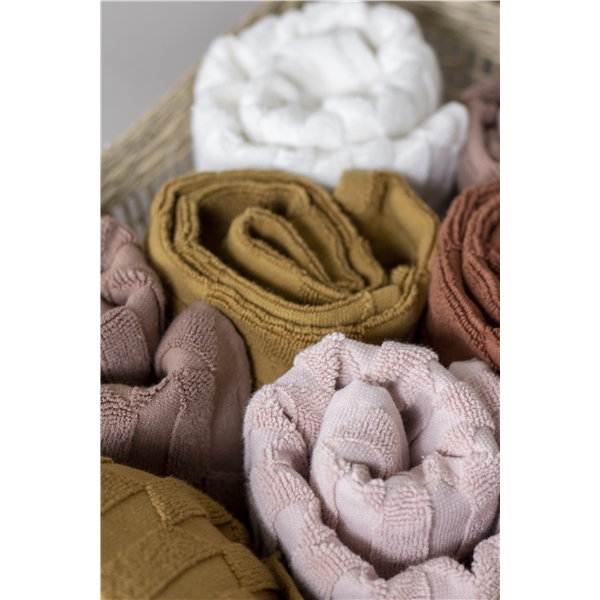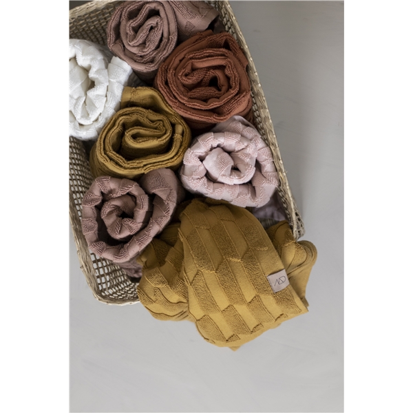 Minihåndklæder fra Mette Ditmer i en pakke med 3 stk. Håndklæderne fra Geo-serien er praktiske og har mange anvendelsesområder. De passer blandt andet perfekt på badeværelset hvor gæsterne kan bruge dem til at tørre hænderne med et rent og tørt håndklæde uden bakterier. Du kan også bruge håndklæderne som ansigtshåndklæde/vaskeklud til din morgen- eller aftenrutine. Udover at være praktiske er de små håndklæder desuden smukke at have stående fremme i en kurv eller på en bakke på køkkenbordet eller på badeværelset. Det smukke tredimensionelle mønster er både fint og unikt. Du kan kombinere de små håndklæder med de større håndklæder og badeværelsesmåtten fra samme serie.