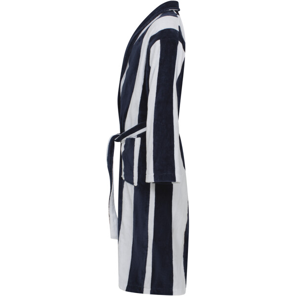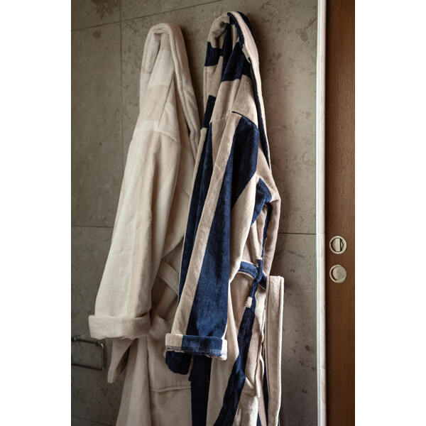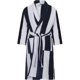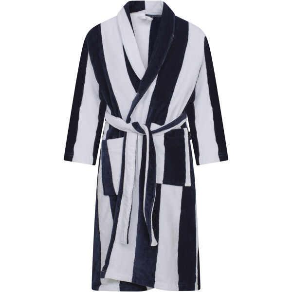 Luksuriøs morgenkåbe/badekåbe i unisex-model med sofistikerede striber, bred krave og veludførte detaljer. Nyd den bløde og tykke bomuldsvelour af højeste kvalitet.
