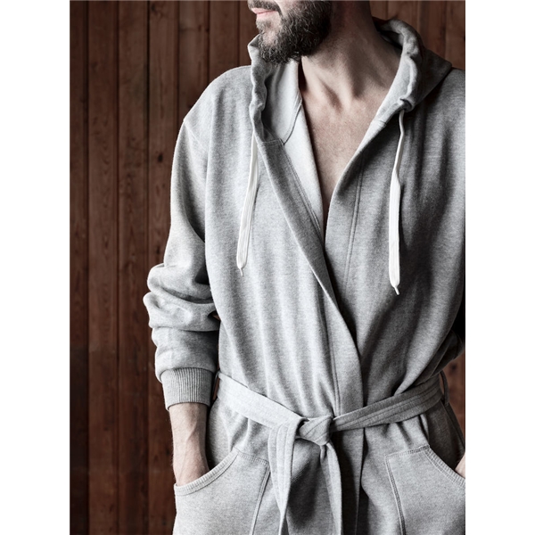 En helt unik variant af en bade-/morgenkåbe fra Kosta Linnewäfveri! Morgenkåben er i college-stof, har to lommer, manchet ved ærmerne samt hætte med løbebånd og bælte i taljen. Når du har denne badekåbe på føles det som om du er iklædt en kæmpestor hyggetrøje.