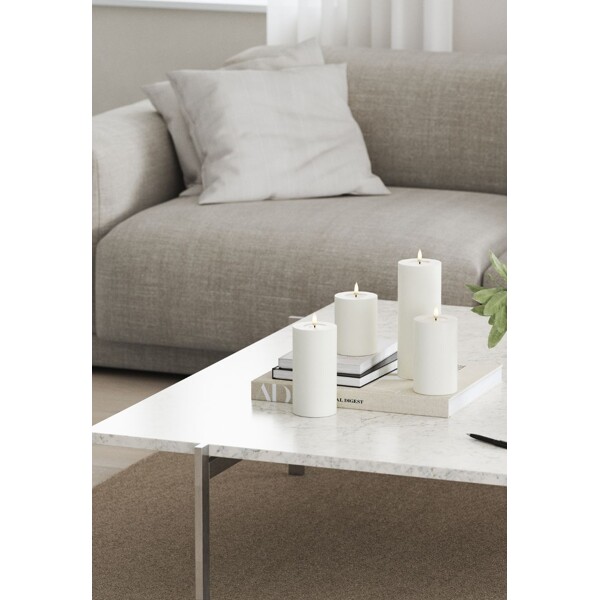 Skab en varm og indbydende stemning med dette stilrene LED-bloklys fra DeluxeHomeart. Lyset har et realistisk design med en forstærket top og WETLOOK™-effekt, hvilket giver et ægte udseende. Udstyret med den patenterede 3D REAL FLAME™-teknologi for en naturtro lysflamme.