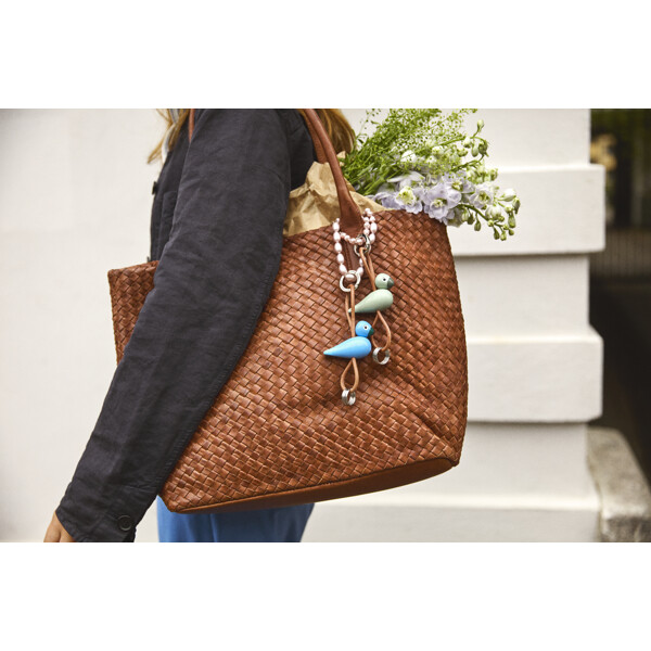 Tag Kay Bojesens elskede klassikere og din kærlighed til original dansk design med dig overalt. På tasken. På bæltet. Eller med bilnøglerne. Denne Kay Bojesen-nøglering har en grøn sangfugl i miniatyrudgave, fremstillet i FSC®-certificeret bøgetræ, og kompletteres med en elegant og praktisk snor i ægte læder. Snoren kan justeres op og ned i forhold til figuren, så du kan skabe dit helt eget udtryk. Øverst sidder en stor sølvfarvet nøglering graveret med Kay Bojesen Denmark, som både fungerer som en stilren detalje og en praktisk funktion med sin smarte karabinhage for nem åbning og lukning. Under figuren hænger tre ekstra nøgleringe, så du har rigelig plads til alle dine nøgler. Med en stilren og dekorativ nøglering fra Kay Bojesen Denmark kan du nemt give hverdagen et personligt præg og tage original dansk design med dig, hvor end du går – med den klassiske sangfugl som din altid trofaste følgesvend. Kay Bojesen var en mester i at tilføre små detaljer til sine træfigurer. Han fandt magien i naturens eget materiale, og med sit enestående talent for formgivning tog den ene legesyge figur efter den anden form i hans fantasi og blev levende i hans hænder. En af hans største klassikere er uden tvivl sangfuglen. Og selvom sangfuglen i denne nøgleringsversion er skaleret ned til kun 4,5 cm i højden, bærer den stadig med sig en rig arv af Kay Bojesens designhistorie, hvor end du går. Kay Bojesen skabte sin første træfigur i 1922 og åbnede ti år senere butik og værksted på Bredgade i København. Siden da har Kay Bojesen været synonym med original dansk design og et legesygt univers af ikoniske træfigurer, skabt med et enestående øje for detaljer, humor og glæden ved unikt kvalitets-håndværk. Det er derfor, vi siger, at Kay Bojesen har været original siden 1922.