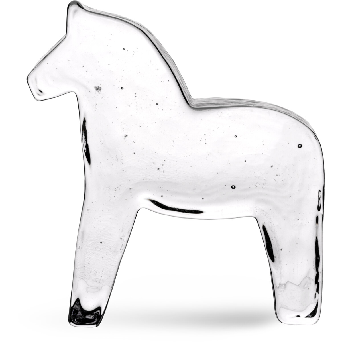 En stilren glasversion af den klassiske Dalahest fra Kosta Boda. Denne større hest er håndstøbt i klart glas ved Kosta Glasbruk og kombinerer svensk tradition med moderne design. Glassets klare overflade fanger lyset smukt og gør hesten til en dekorativ detalje i hjemmet.