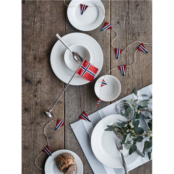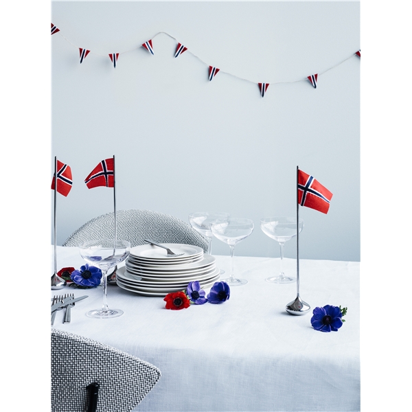 Design: Rosendahl Bordflaget fra Rosendahl står smukt på bordet. Flaget er fæstnet indvendigt i den blankpolerede flagstang, og derfor er der ingen synlig snor. Flagstangen måler 35 cm og har en let afrundet bund så flaget kan vippe let.