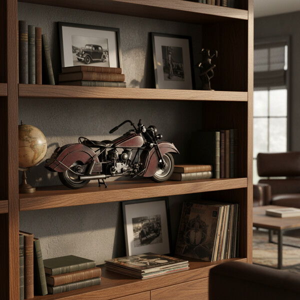 Tænd din passion for klassisk design med Crimson Cruiser, en fantastisk motorcykelskulptur fremstillet af 100% håndlavet genbrugt metal. Hver detalje, fra de røde skærme til motorkomponenterne, afspejler en fortælling om forvandling og omdanner kasserede materialer til kunst.