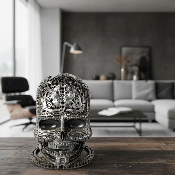 Udforsk vores Iron Skull Skulptur, et iøjnefaldende, 100 % håndlavet kunstværk fremstillet af genbrugt metal. Dette unikke hoved forvandler kasserede materialer til en dristig erklæring, dygtigt skabt af industrielle komponenter. Perfekt til moderne omgivelser, repræsenterer det miljøbevidsthed og kreativitet, hvilket gør det til mere end blot dekoration.
