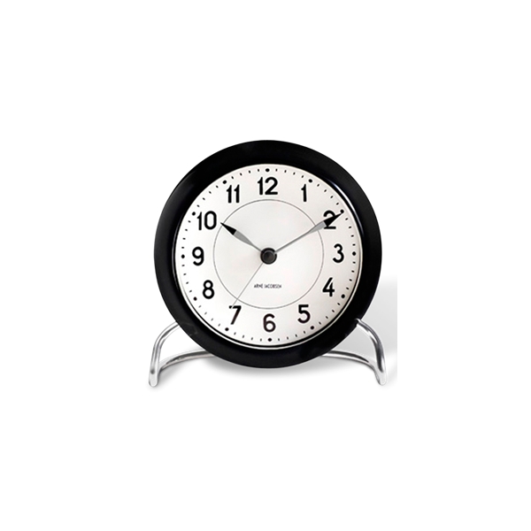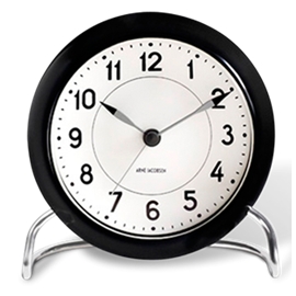 Den verdensberømte arkitekts bordur med alarm blev skabt i 1939. Det grafiske udseende og metalfoden med tydelig inspiration fra stolene Myren og Syveren gør uret til en oplagt gaveidé til designelskeren. Uret passer overalt i det moderne hjem, og med de opdaterede snooze- og lyssensor-funktion er det et effektivt vækkeur på natbordet.Design: Arne Jacobsen Diameter: 11 cm. Højde: 12 cm. Materiale: hærdet glas og plast.Batteri 2 stk. AA-batterier (medfølger ikke).
