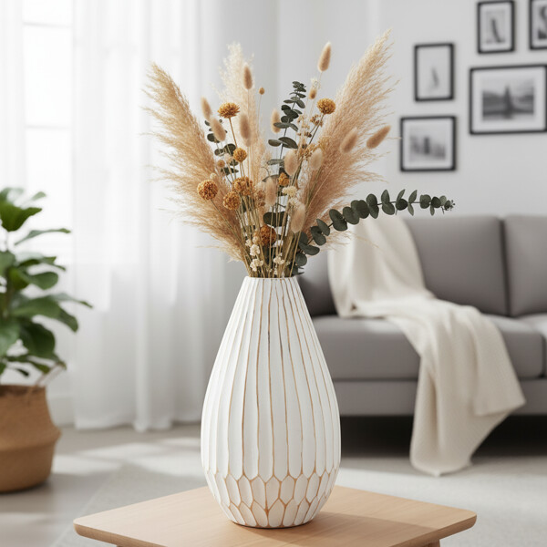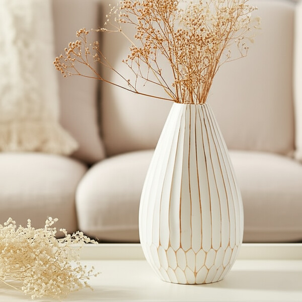 Forøg dit hjem med den unikke tekstur og det håndværksmæssige charme hos disse smukt håndlavede trædekorationer, tilgængelige i klassisk sort eller ren hvid. Omhyggeligt fremstillet i Thailand, har hver vase en distinkt vertikalt rillet overflade, suppleret med et indviklet bikagemønster ved basen, hvilket skaber en fængslende visuel og taktil oplevelse. Disse miljøvenlige genstande er et bevis på ægte håndværk, perfekte til at forskønne dit rum med bæredygtig kunst og moderne stil. Størrelse: Cirka 13 x 13 x 20 cm Materiale: Fremstillet af 100% naturligt træ. Håndlavet Ekspertise: Hver vase er fuldstændig håndlavet og gennemgår en indviklet proces af slibning, udskæring, formning, udjævning og maling, hvilket sikrer dens unikke karakter og overlegne kvalitet. Miljøvenlig: En dekorativ artikel fra Thailand, der støtter en økologisk bevidst livsstil. Unik Tekstur: Fremviser en fængslende tekstureret overflade med vertikale riller og en distinkt bikagemønstret base, ideel til at tilføre dybde og organisk elegance til din indretning.