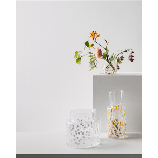Meadow har en blomstereng som både inspiration og udtryk. Det er en serie vaser, der gør sig lige så godt alene som med en buket blomster. Takket være den glaskrossteknik, der anvendes i fremstillingen, er hver vase unik. Den store vase Spring er som skabt til at omfavne en lidt større buket eller alene lyse dit hjem op som en eng under forårets første solrige dage. Design af Sara Persson.