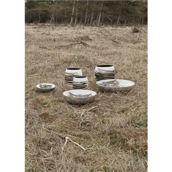 Lignum-vase fra Steltons Stockholm-serie. Samarbejdet mellem Stelton og de svenske formgivere Bernadotte & Kylberg fortsætter! Denne gang med en ny fortolkning af Stockholm-kollektionen. Denne kunstneriske kollektion er skabt med afsæt i formgivernes kærlighed til Stockholms skærgård. Designet på Stockholm Lignum-serien er opstået ved at duoen Bernadotte & Kylberg har vendt blikket mod fast grund og mod de farver, som omgiver den smukke skærgård. Det er områdets planteliv og fine nuancer af brunt, rødt, grøn og blåt som har inspireret parret til at skabe det nye kunstfærdige mønster, og derfor bærer serien navnet Lignum, der betyder "træ" på latin. Serien består af vaser og skåle i forskellige størrelser, der er fremstillet af aluminium med kold emalje, som tilfører iver kollektionen et eksklusivt look og samtidig fremhæver kvaliteten. Det smukke mønster påføres i hånden, og dermed bliver vaserne og skålene til unikke kunstværker, der pryder hjemmet med en enkel og minimalistisk indretning, ligesom de skaber et mere dramatisk udtryk når de placeres sammen i grupper med forskellige størrelser. Skålene kan anvendes til både frugt og salat eller til andre kolde mellemmåltider. Produkternes høje kvalitet og tidløse former gør dem til perfekte gaver til bryllup, fødselsdag eller jubilæum.