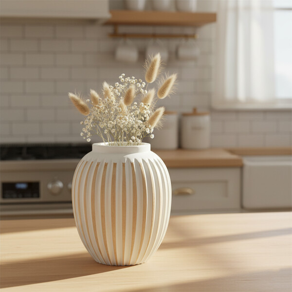 Unik Tekstur: Fremviser en fascinerende vertikal rillet tekstur og en elegant, afrundet form, ideel til at tilføre dybde og organisk elegance til din indretning.