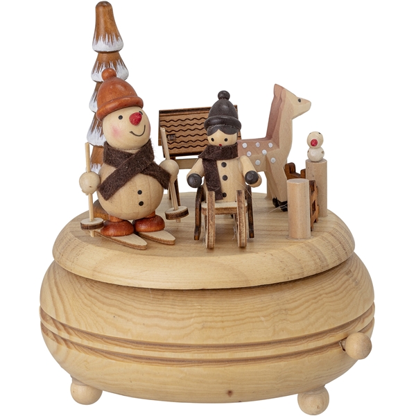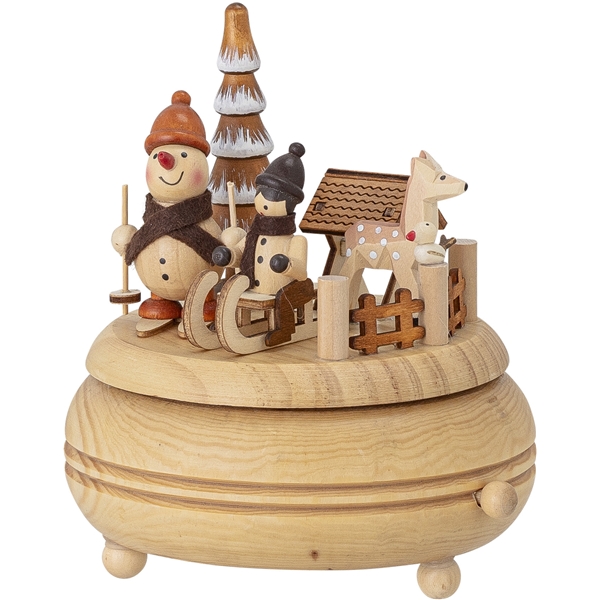 Ronan-bakken fra Bloomingville er formet som et juletræ. Ray-spilledåsen af træ spiller melodier og har en juledekoration på toppen. Fremstillet i træ.