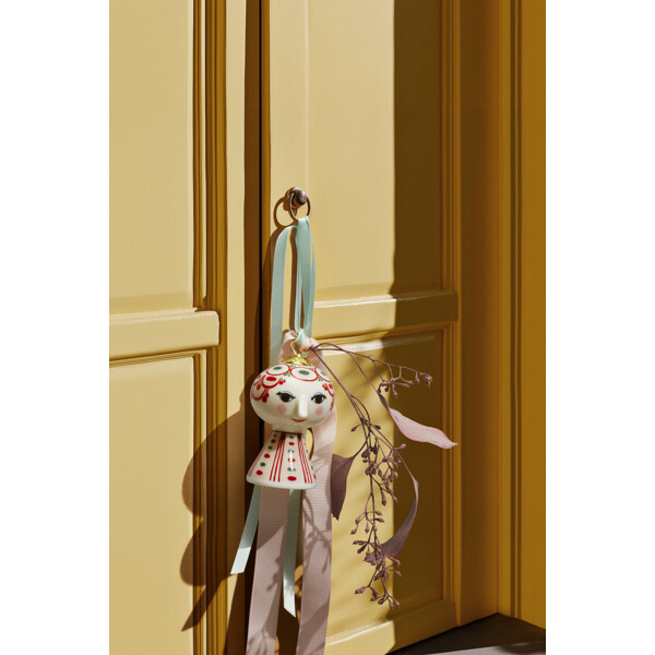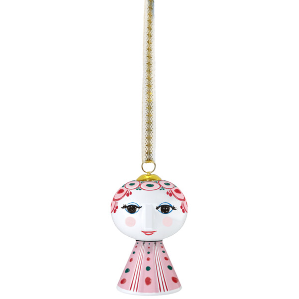 Fold din farverige personlighed ud og skab plads til glæde med Bjørn Wiinblads Eva. Så snart du inviterer Eva ind i dit hjem, vil denne populære serie med Bjørn Wiinblads karakteristiske linjer straks sprede glæde i hvert hjørne. Gennem hele sin karriere udforskede Bjørn Wiinblad farver, former og mønstre – og med den ikoniske Eva-hængedekoration kan du på en enkel og dekorativ måde lade kreativiteten flyde i dit hjem. Bjørn Wiinblad repræsenterer alt, hvad der er legende, originalt, kreativt og vidunderligt. Og med denne smukke Eva-hængedekoration i primært grønne nuancer, inspireret af kunstværker fra Bjørn Wiinblads legendariske designarkiv, skaber du hurtigt en atmosfære af glæde og kreativitet, der strækker sig ud i hver krog af dit hjem. Hængedekorationen er 7,5 cm høj og fremstillet af blankglaseret porcelæn med farvede dekaler, inspireret af Bjørn Wiinblads oprindelige Eva-univers, hvor brede hoveder med blomsterdekorationer og en kegleformet krop udgjorde grundlaget. Ansigtet med de mandelformede øjne og den spidse næse er tegnet i Wiinblads oprindelige linje, mens det farverige kjolemønster er en moderne fortolkning af hans arkivillustrationer. Med sit glade smil, rosende kinder og farverige dekorationer legemliggør Eva essensen af Bjørn Wiinblad som person og kunstner. Der er noget "larger than life" over hendes selvsikre, poetiske og drømmende udtryk, som gør hende til et statement piece, der fanger øjet uanset størrelse. Hun pryder og spreder glæde på juletræet, i vinduet eller på grene, hvor hun hænger i et bånd med guldfolietryk og original Bjørn Wiinblad-dekoration – og lyser op tilværelsen præcis som Bjørn Wiinblad elskede det. Bjørn Wiinblad var en livsglad kunstner med en stor og farverig personlighed, som gik sin egen vej og ikke var bange for at drømme og tænke stort. Den sjæl findes også i Eva, som udstråler selvsikkerhed og inspirerer os til at udtrykke vores egen stil og personlighed gennem kreative dekorationer. En ting er sikker: Det bliver aldrig kedeligt, når Eva flytter ind.