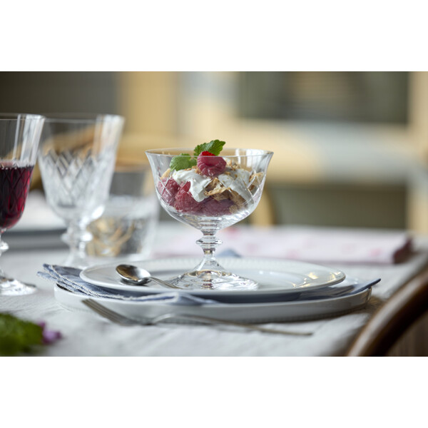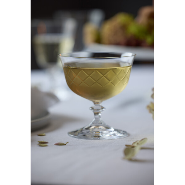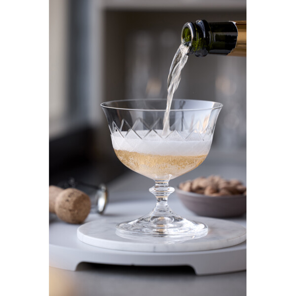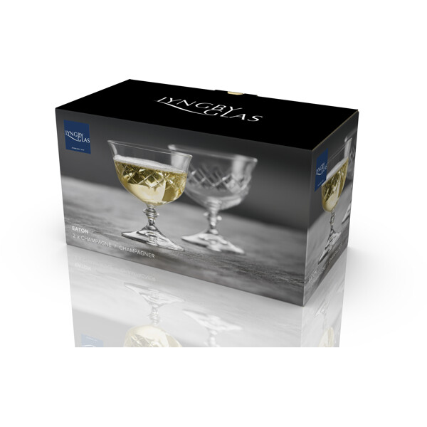 Eaton champagneskål, 28 cl, fortolker det klassiske diamantformede mønster fra det ikoniske Eaton-glas, som Lyngby Glas skabte i 1960'erne. Designets tidløse æstetik forener klassisk charme med moderne stil og tilfører en helt unik stemning ved bordet. Fremstillet i krystalglas tilbyder Eaton enestående klarhed og holdbarhed, hvilket gør glasset til en fornøjelse at bruge – uanset om det er til en hyggelig hverdagsmiddag eller en festlig aften med venner. Glassets korte stilk giver ekstra stabilitet og gør det behageligt at holde i. Eaton fremstilles i Europa med stor præcision gennem en avanceret produktionsproces, der inkluderer maskinslibning og polering. Resultatet er høj klarhed og en eksklusiv finish, der fremhæver glassets enkle elegance.