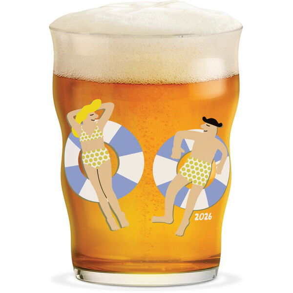 Holmegaard x Mikkeller – det bedste fra to verdener til din øl. I tæt samarbejde har Holmegaard og Mikkeller forenet deres håndværk i en serie ølglas, hvor glas og øl af højeste kvalitet mødes i en fuldendt oplevelse for alle sanser. Med 2026-årsglasset får du en smukt dekoreret udgave af seriens pintglas på 40 cl, hvor Mikkellers maskotter Henry og Sally ligger i gule badetøj og slapper af i hver sin blå- og hvidstribede badering – en afslappet skål for nydelsen, som minder os om at slappe af og nyde livets langsomme øjeblikke. I mere end 200 år har Holmegaard været en passioneret pioner med et hjerte af ild, som har udfordret glassets muligheder og defineret dansk glashistorie. Selv i dag fortsætter Holmegaard med at skubbe grænser og går aldrig på kompromis med hverken kvalitet eller kreativitet. Og vil dette festligt dekorerede 2026-årsglas ikke endnu en gang vække samtaler og tiltrække beundrende blikke, når Holmegaard x Mikkeller-serien nu udvides med dette seneste tilskud? En perfekt samtalestarter – præcis som Holmegaard har været siden 1825.