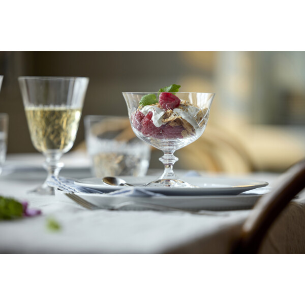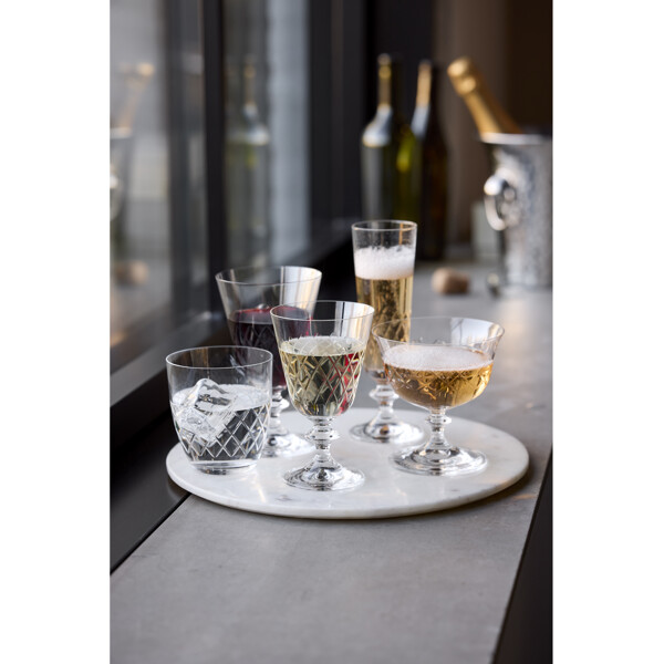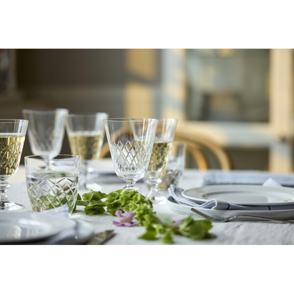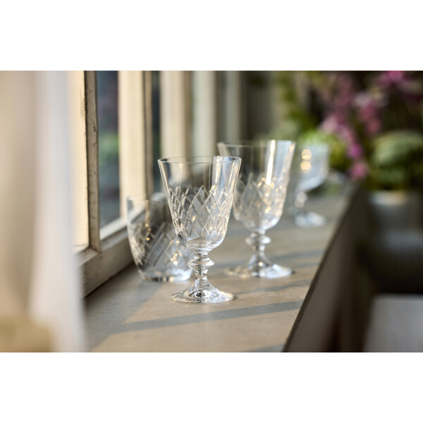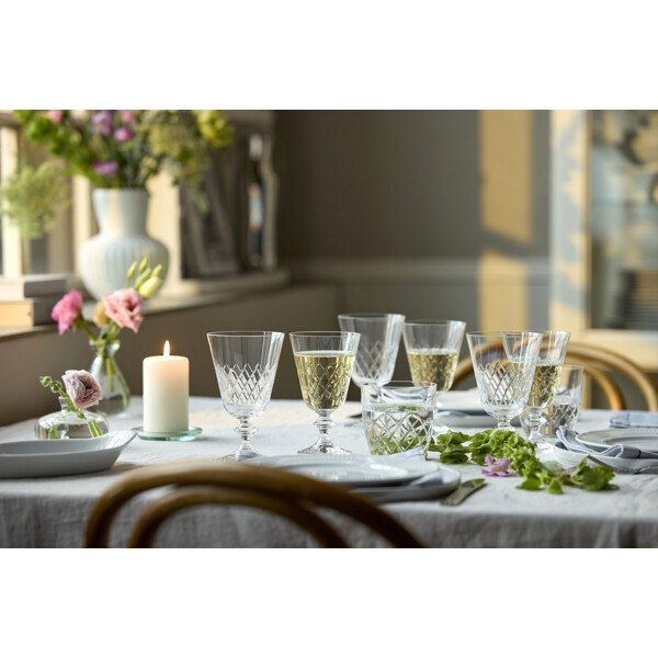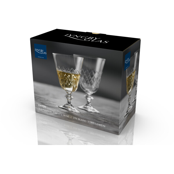 Eaton hvidvinsglas, 23 cl, fortolker det klassiske diamantformede mønster fra det ikoniske Eaton-glas, som Lyngby Glas skabte i 1960'erne. Designets tidløse æstetik forener klassisk charme med moderne stil og tilfører en helt unik stemning ved bordet. Fremstillet i krystalglas tilbyder Eaton enestående klarhed og holdbarhed, hvilket gør glasset til en fornøjelse at bruge – uanset om det er til en hyggelig hverdagsmiddag eller en festlig aften med venner. Glassets korte stilk giver ekstra stabilitet og gør det behageligt at holde i. Eaton fremstilles i Europa med stor præcision gennem en avanceret produktionsproces, der inkluderer maskinslibning og polering. Resultatet er høj klarhed og en eksklusiv finish, der fremhæver glassets enkle elegance.