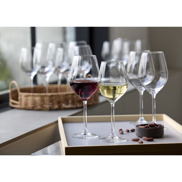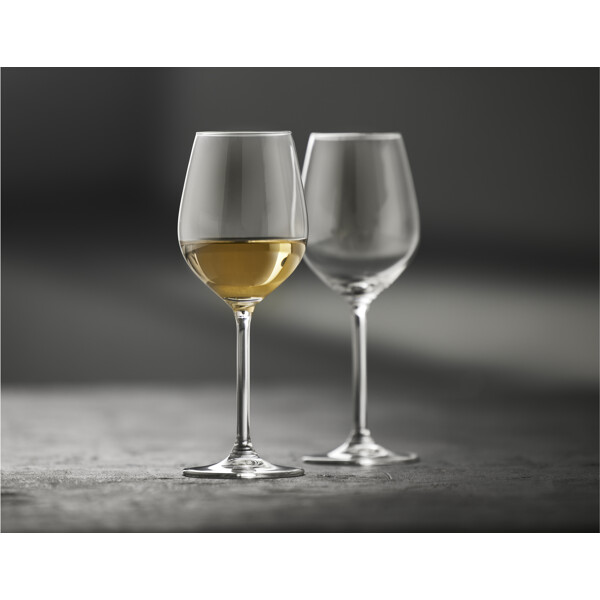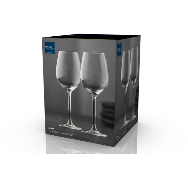 Hvidvinsglas Juvel 38 cl 4 stk. Den elegante stilk giver et meget elegant glas, som med sit tidløse design fremstår som et klassisk glas, der kan anvendes i alle typer af opdækninger.