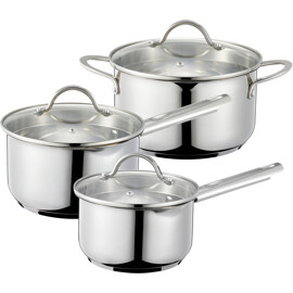 Kosmo kasserollesæt i tre dele hjælper dig med at lykkes med alt fra kogte kartofler til saucer. De smukt designede kasseroller kommer i tre forskellige størrelser.