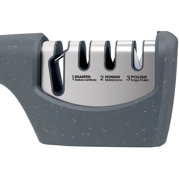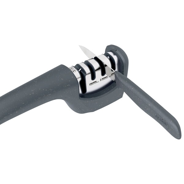 Væk hurtigt sløve blade til live igen med blot nogle få strøg gennem de forskellige dedikerede slibespor. Med 4 forskellige slidser: 1. til sakse og takkede blade, 2. slibning, 3. til bryning og 4. til polering af lige blade.