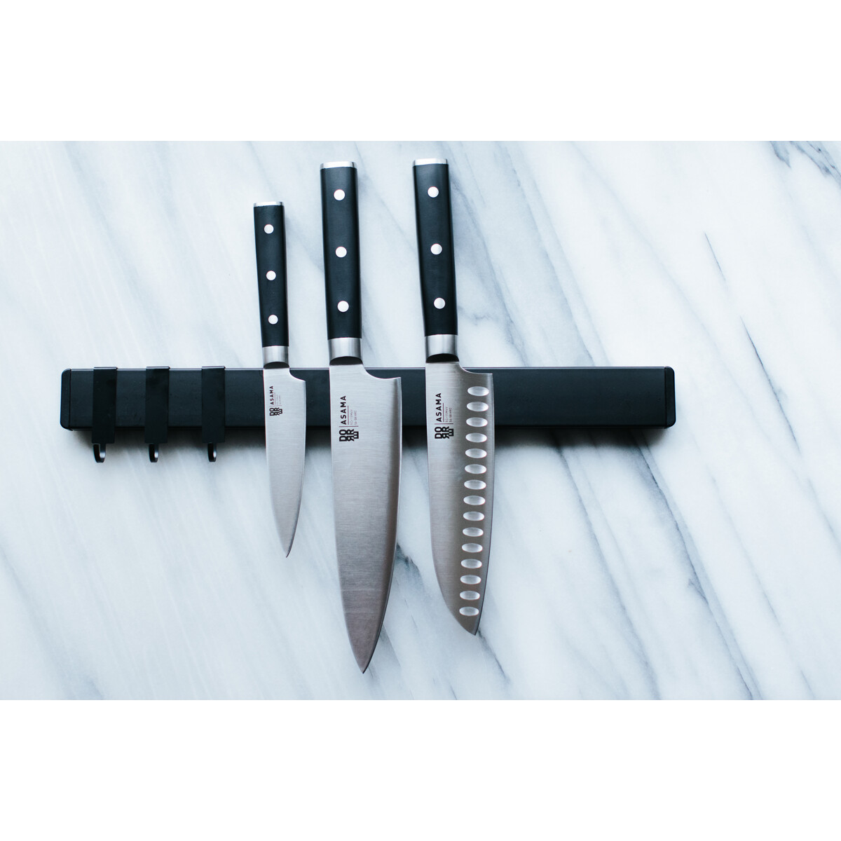 Maggie magnetliste i sort metal giver smart opbevaring med både magnetfunktion og tre kroge. Med en længde på 40 cm får du plads til knive og redskaber. En praktisk løsning, der frigør arbejdsplads og skaber orden, samtidig med at den giver et stilrent udtryk på køkkenvæggen.