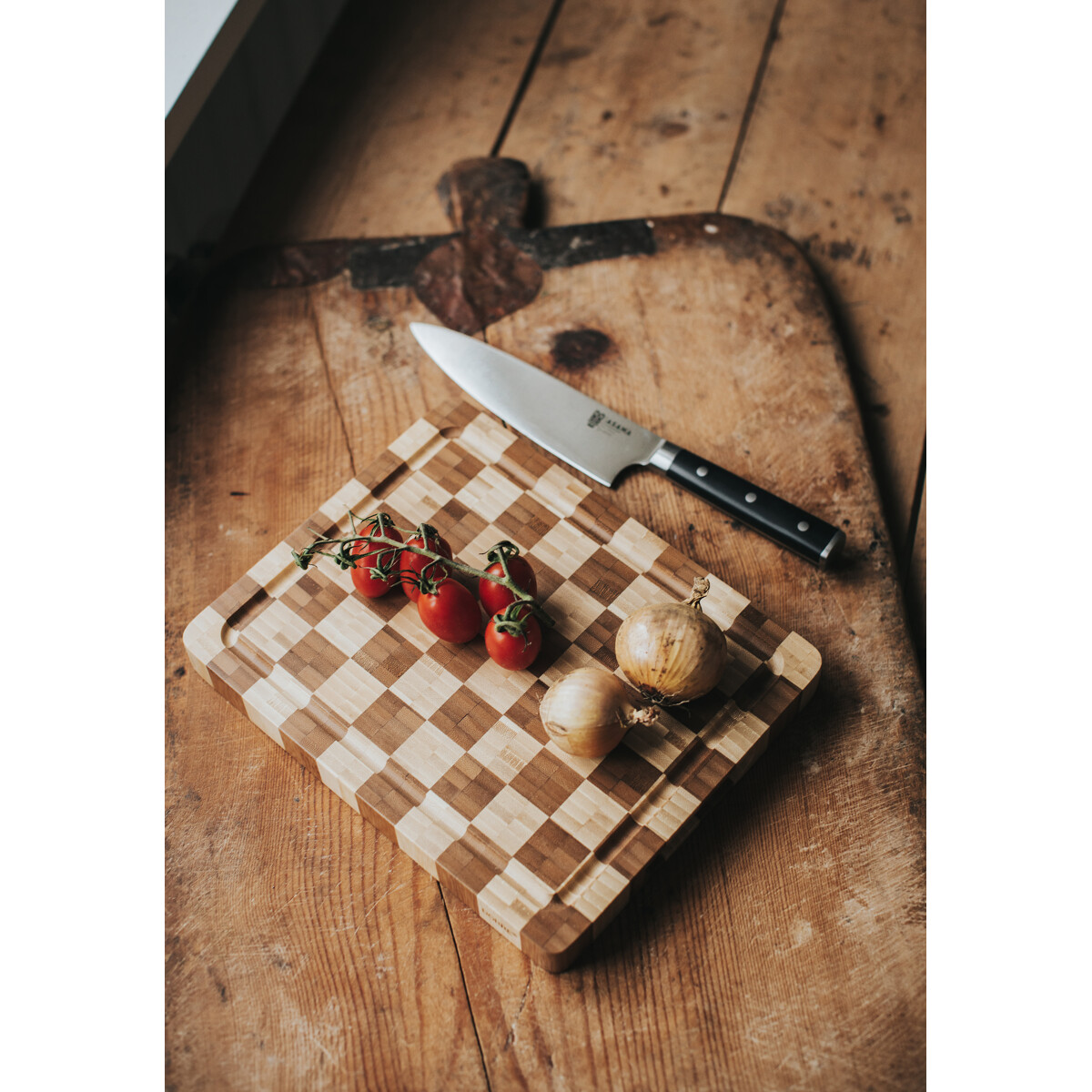 Kombiskærebræt i bambus tilbyder en stabil, holdbar arbejdsflade, der er skånsom mod knive. Med de forskellige mål er det passende til daglige køkkenopgaver. Den massive konstruktion giver sikkerhed ved skæring, samtidig med at bambusens naturlige struktur giver et varmt udtryk.