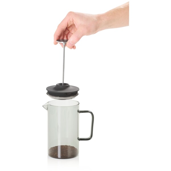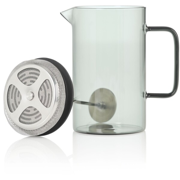French-press kaffebrygger. Kapacitet ca. 600 ml. Fremstillet af glas, rustfrit stål, silikone.