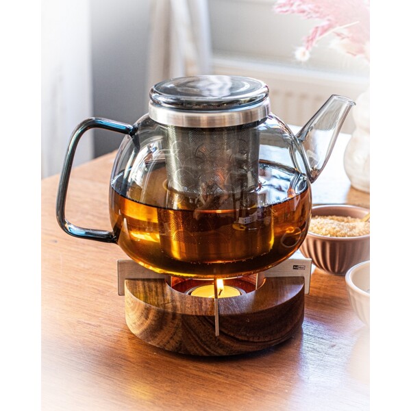Tekande med stort finfilter for optimal aromaudvikling. Fremstillet af mundblæst glas, hvilket gør hver kande unik.
