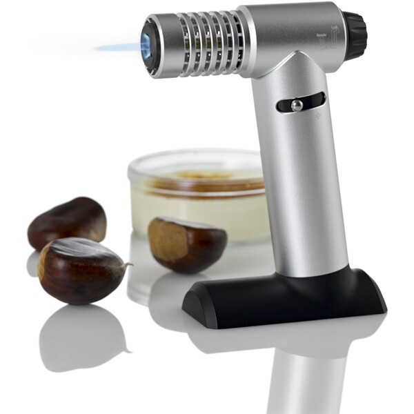 Praktisk flamberbrænder til enkel karamellisering, glasering, flambering og mere! Høj fleksibilitet med justerbar flammestyrke. Genopfyldelig med tændgas.