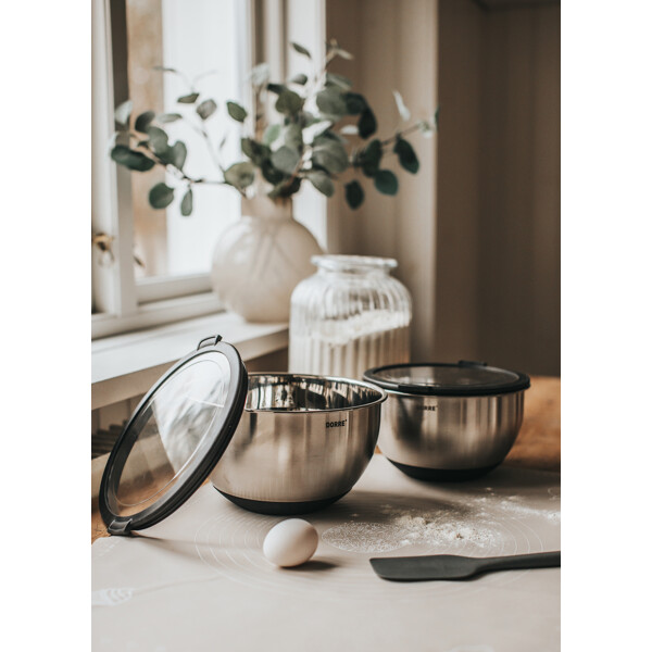 Belki skålesæt 2-pak i rustfrit stål tilbyder to rummelige volumener til bagning, madlavning og forberedelser. Med 2,5 og 3,5 liter får du fleksible skåle, der tåler daglig brug. Den lette men stabile konstruktion giver godt greb og holdbarhed i køkkenets alle opgaver.