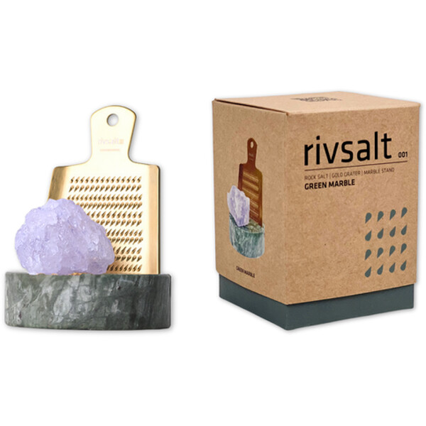 Du får den populære og omtalte rivsalt-funktionalitet, men nu i stedet med premiumfinish hele vejen igennem, såsom guldbelagt rivejern i rustfrit stål, bordstativ i grøn marmor samt vores eksklusive blå saltsten. Dette er en gave til den person, der bare skal have det lille ekstra i sit allerede elegante hjem.