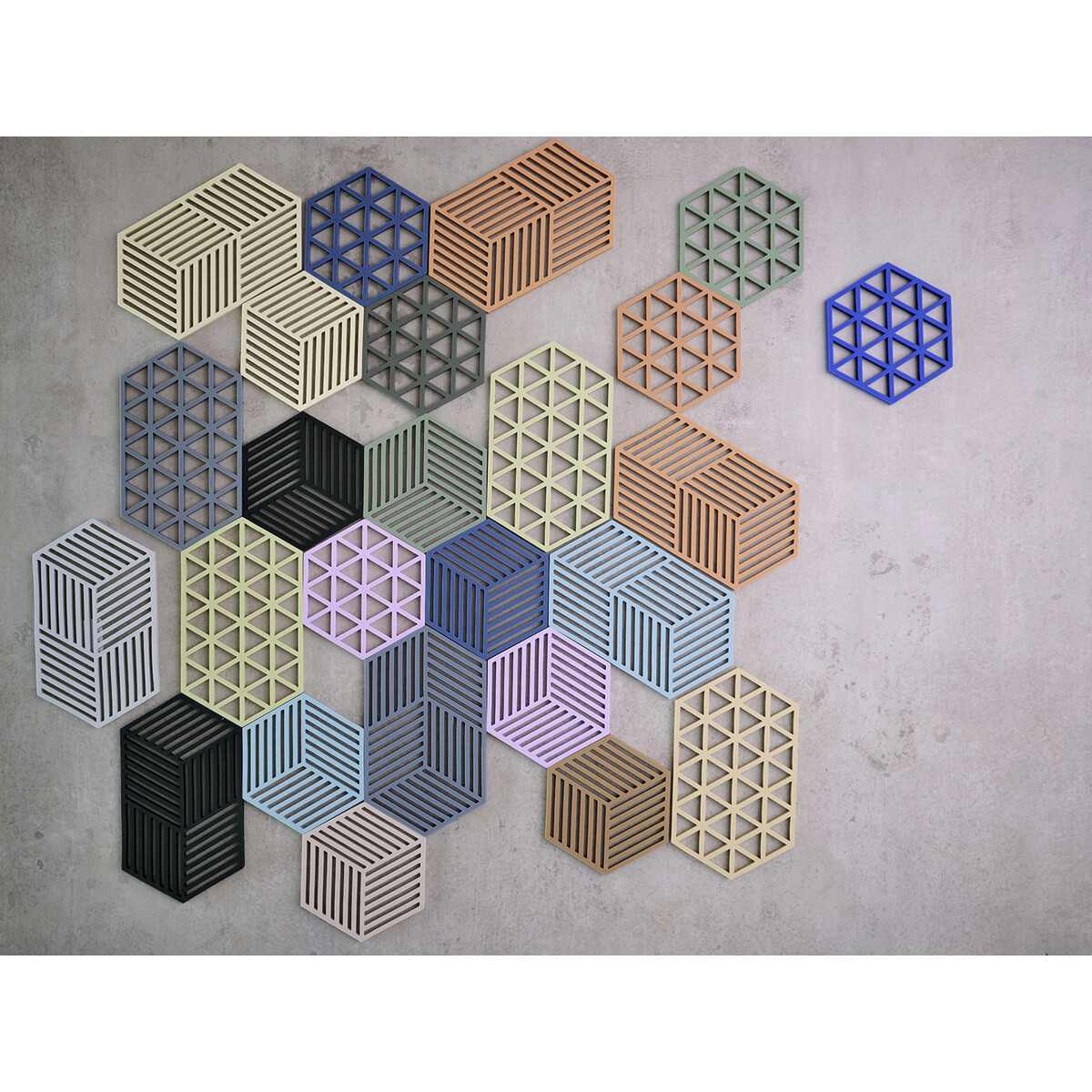 Den store Hexagon grydelap er perfekt til større fade. Grydelapperne i silikone fra Zone er så grafisk smukke, at de indbyder til at placere mange på bordet som ren dekoration. Velegnet til opvaskemaskine og varmebestandig op til 250 °C. 24 x 14 x 0,9 cm.