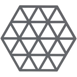 Triangles bordskånerne i silikone er så grafisk dekorative, at de indbyder til at placere flere stykker langs hele bordets længde uden at stille noget på dem. De er varmebestandige op til 250 °C og kan vaskes i opvaskemaskine. 16 x 14 x 0,9 cm.