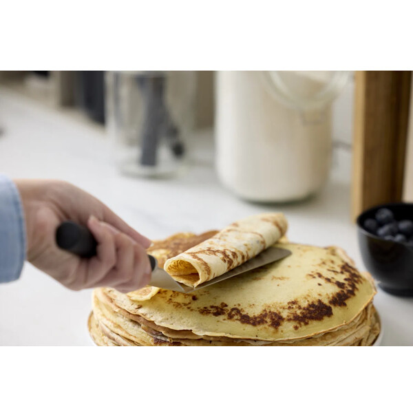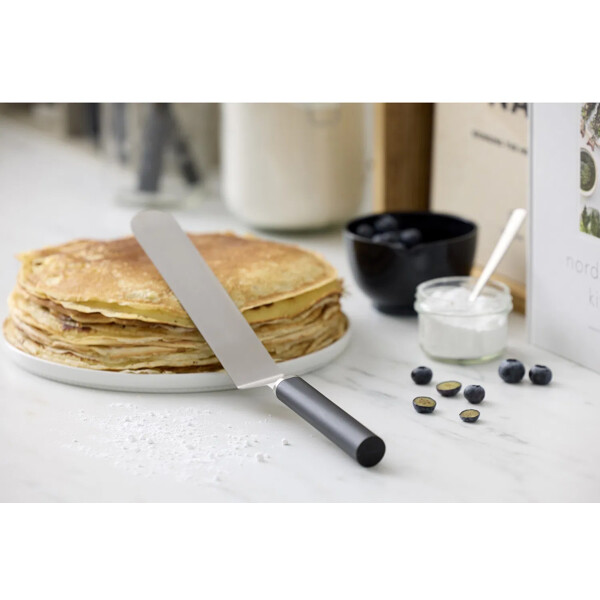 Emma paletkniv i stål har et langt, smalt blad med bøjning, hvilket gør den perfekt til at vende pandekager, smøre glasur ud og meget mere. Et køkkenredskab du vil bruge igen og igen – hvor stil møder funktion.