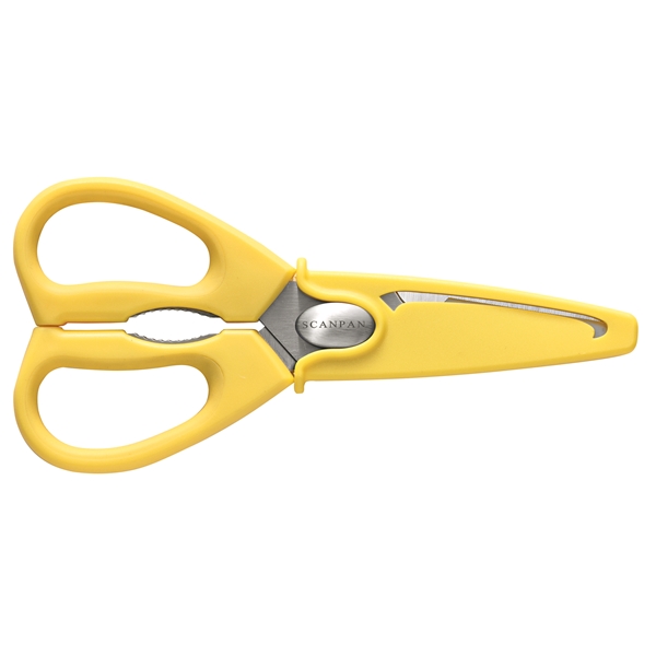 Du kan bruge denne køkkensaks til meget andet end blot at klippe. Den kan endda klippe ben på fjerkræ eller bruge den til at knække nødder, og du kan skille den ad når den skal rengøres. Materiale: blad i rustfrit stål og håndtag i plast.Vis din personlige stil - også i køkkenet! Spectrum er en farverig serie med køkkenredskaber, der indeholder alt fra knive til krydderikværne. Nu kan du gøre dit køkken endnu mere farverigt ved at mixe og matche de forskellige produkter i serien.