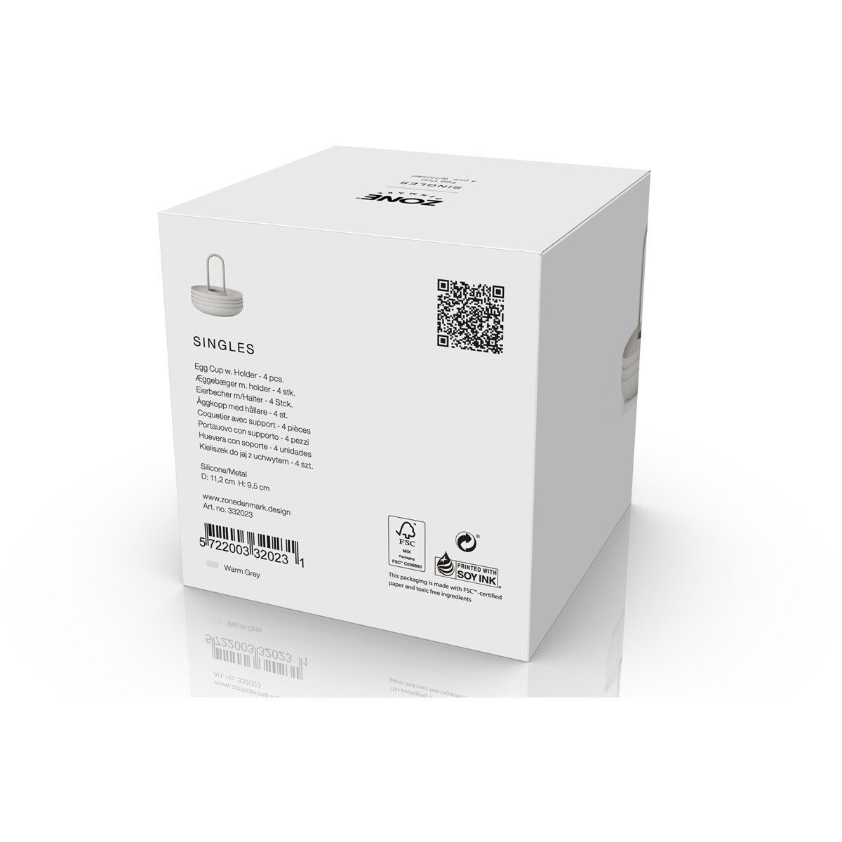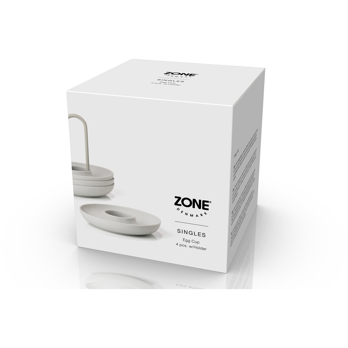 De fire æggebægre i holder fra Singles kan sættes på bordet med kun én hånd. Og den buede kant fanger både salt, æggeskaller og gæsternes opmærksomhed. Så du kan spise brunch med stil – for eksempel i selskab med gode venner.