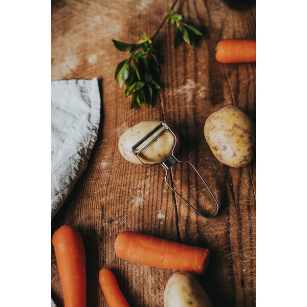 Klassisk og slidstærk kartoffelskræller, der gør det nemt at skrælle kartofler, grøntsager og frugt. Den skarpe klinge giver et glat resultat, og det ergonomiske håndtag giver et godt greb. Et uundværligt køkkenredskab.
