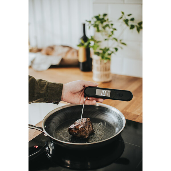 Praktisk 2-i-1 termometer med infrarød funktion til overfladetemperatur og spyd til indre temperatur. Giver hurtig og præcis måling ved madlavning, grillning og bagning. Perfekt til dig, der ønsker fuld kontrol over temperaturen i køkkenet.