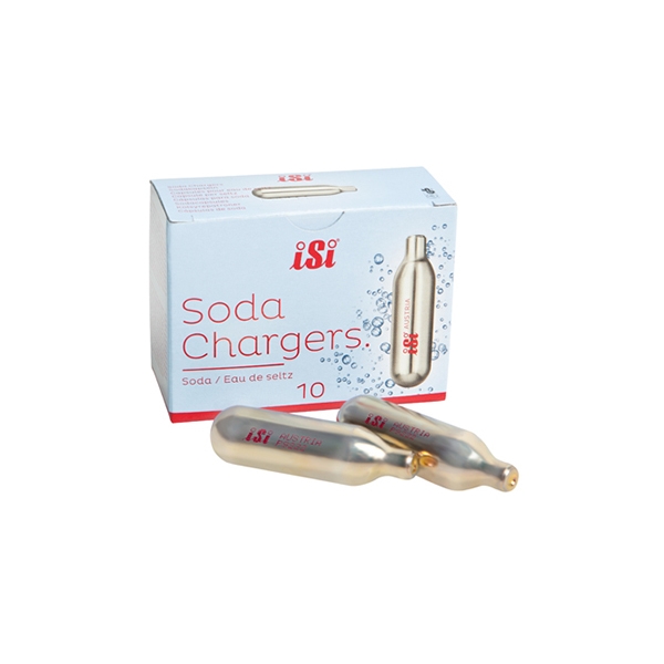 iSi CO2-patroner til sodasifoner. Leveres i en pakke med 10 stk. Brug CO2-patronerne når du skal lave sodavand. En patron giver 1 liter sodavand. Stålet er 100% genbrugeligt og iSi-patronerne er HACCP-certificerede. Hver patron indeholder 8 gram koncentreret energi.
