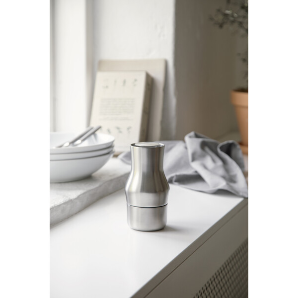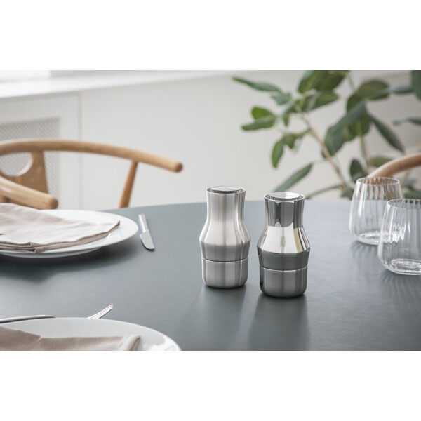 De smukke, minimalistiske kværne i højpoleret rustfrit stål/mat stål bidrager til en elegant sammenhæng på bordet. Den keramiske CrushGrind®-mekanisme er placeret i toppen af kværnen, og takket være dette gennemtænkte design falder der ingen krydderier på bordet, når kværnen sættes ned. Placeringen af kværnmekanismen giver flere fordele: tyngdekraften leder naturligt krydderierne ind i kværnen og giver en mere ensartet maling. Samtidig ligger kværnen godt i hånden, hvilket giver et behageligt greb og bedre kontrol. Med fire indstillinger fra fin til grov er det også nemt at justere krydringen efter forskellige præferencer.