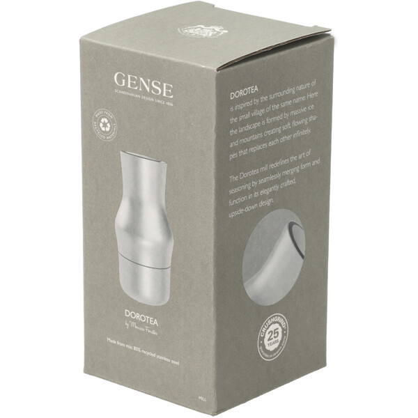 Dorotea-kværnene er fremstillet af genanvendt rustfrit stål. Det betyder, at det rustfrie stål har levet et tidligere liv, som man plejer at sige. Udover at det er ekstremt slidstærkt, kan rustfrit stål smeltes om og forvandles til nye produkter uden at miste sine egenskaber og kvaliteter. Rustfrit stål kan genanvendes i det uendelige og er derfor et materiale, der fortsætter med at give.