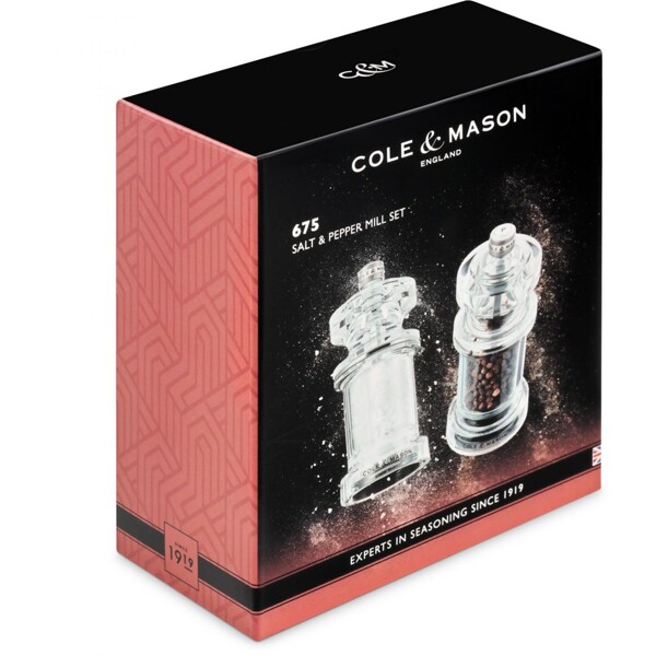 I 1975 lancerede Cole and Mason verdens første akrylkværn, vores ikoniske 505. Opfundet af David Cowan, søn af grundlæggeren Julian Cowan, har den vist sig at være en populær og tidløs klassiker, som vi stadig har i vores sortiment i dag. De nye 605- og 675-kværne henter inspiration fra deres ikoniske modstykker, mens kanternes afskæring, den nye knop og tilføjelsen af kraven i rustfrit stål giver en moderne og førsteklasses følelse. Alle peberkværne er udstyret med Cole and Mason Precision kulstålmekanisme og er dækket af vores livstidsgaranti. Saltkværnene er alle udstyret med vores rustbeskyttende keramiske mekanisme af høj kvalitet.
