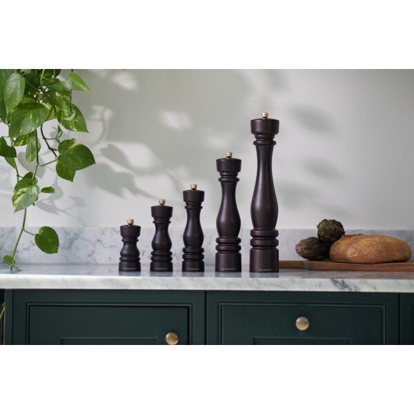 Den nye London-kværn har fået sit navn fra det historiske hjerte af byen London, hvor mærket Cole and Mason blev grundlagt allerede i 1919. Vi har skabt en kværn, der både ærer vores arv og ser mod fremtiden med en klassisk, men alligevel moderne æstetik, der vil vise sig at være et elegant supplement til både traditionelle og moderne køkkener. Formen på kværnen er inspireret af den smukke art déco- og britiske industriarkitektur, der findes i hele byen. Knoppen, der sidder på toppen af kværnen, giver et nik til den stolthed, vi har over vores engelske arv. Londonkværnene findes i fem størrelser over saltkværne, peberkværne og gavesæt. Præcisionsmekanisme i kulstål. Saltkværnene er alle udstyret med vores rustbeskyttende keramiske mekanisme af høj kvalitet.
